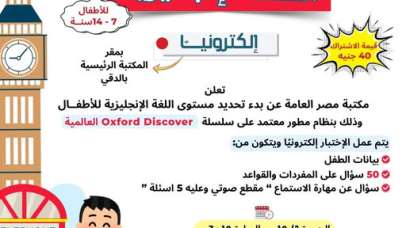 مكتبة مصر العامة تُطلق نظامًا مطورًا لتعليم اللغة الإنجليزية للأطفال الأحد 21/سبتمبر/2025…