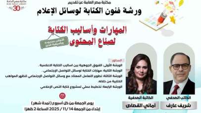 🖋️✨ ورشة فنون الكتابة لوسائل الإعلام بمكتبة مصر العامة
