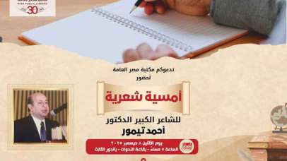 أمسية أدبية شعرية مع الشاعر الكبير أحمد تيمور – الاثنين 8 ديسمبر…