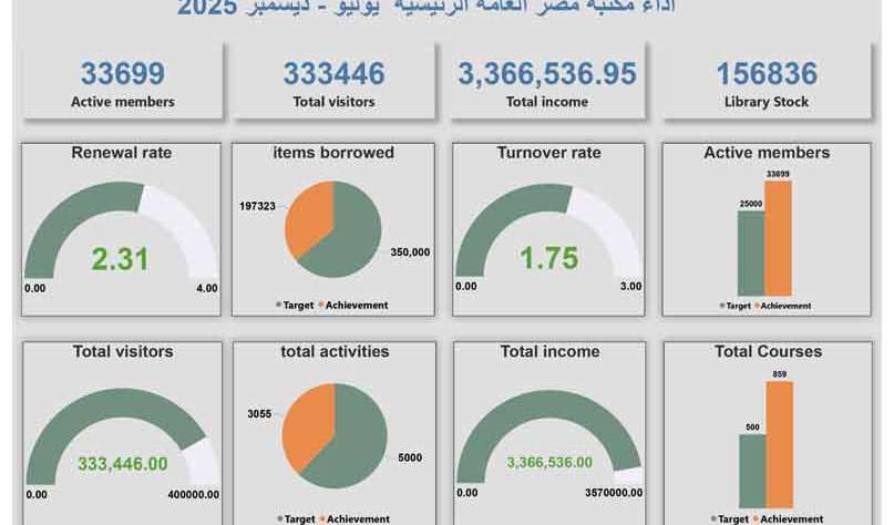 «مكتبة مصر العامة» تستقبل أكثر من 740 ألف زائر وتتجاوز مستهدفات العضوية