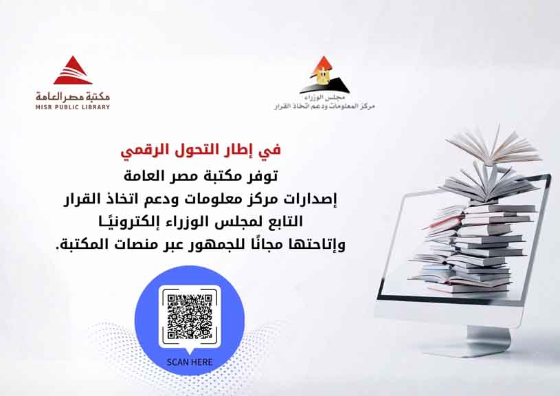 مكتبة رقمية نحو المستقبل اضغط هنا — إتاحة إلكترونية لإصدارات مركز المعلومات في إطار دعم التحول الرقمي وحرص مكتبة مصر العامة على مواكبة التطور التكنولوجي في عالم المعرفة، توفر المكتبة لروّادها إصدارات مركز معلومات ودعم اتخاذ القرار التابع لمجلس الوزراء المصري بشكل إلكتروني ومجاني عبر منصات المكتبة الرقمية.