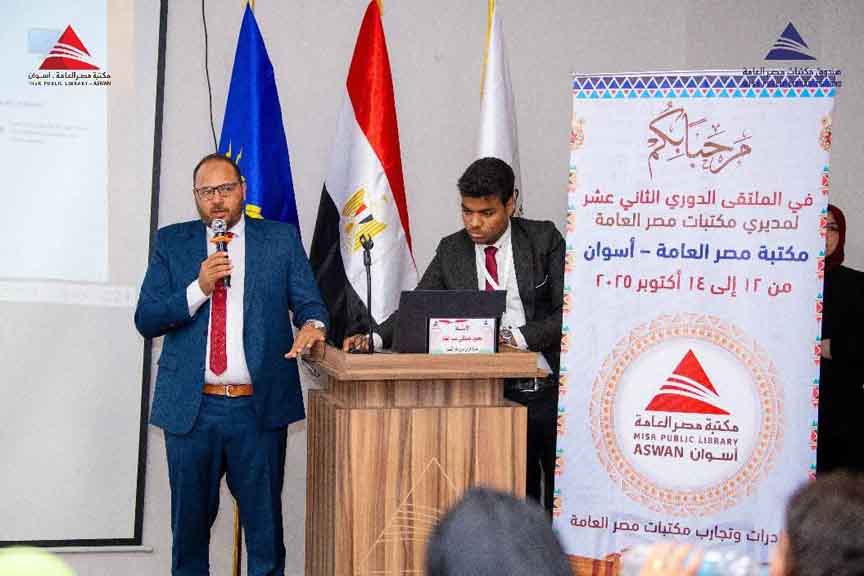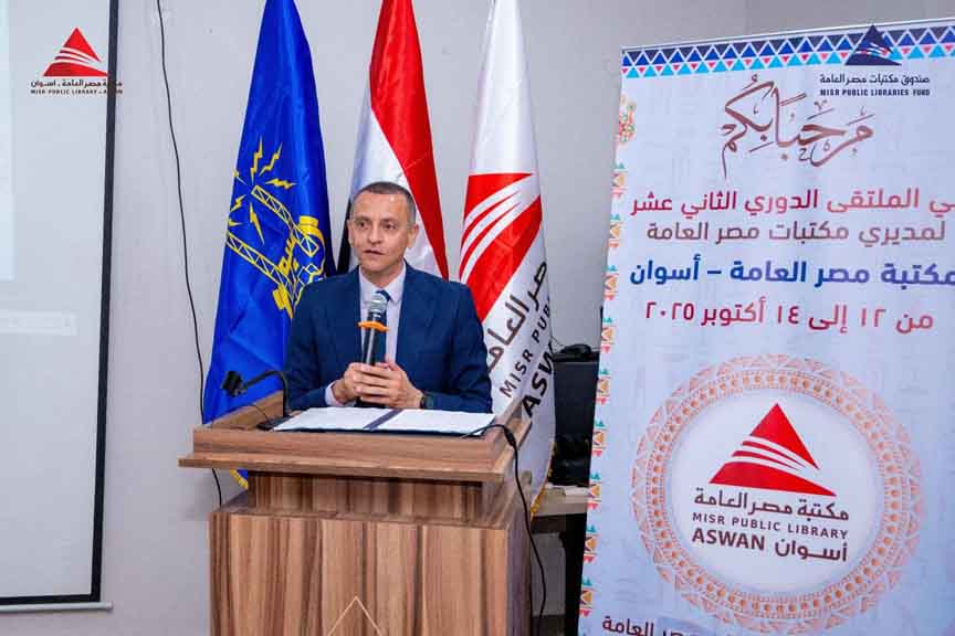 في مشهد ثقافي يجسّد روح التعاون والابتكار، وبرعاية السفير عبد الرؤوف الريدي – رئيس مجلس إدارة مكتبات مصر العامة، وصندوق مكتبات مصر العامة، والدكتور إسماعيل كمال – محافظ أسوان، انعقد المؤتمر الدوري الثاني عشر لمنظومة مكتبات مصر العامة خلال الفترة من 12 إلى 14 أكتوبر 2025، بمقر مكتبة مصر العامة بأسوان، تحت عنوان: