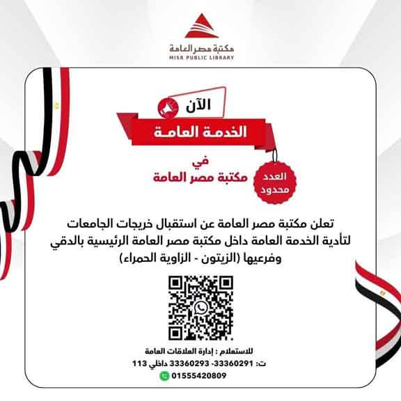🌟 إعلان هام — الخدمة العامة في مكتبة مصر العامة 🌟
