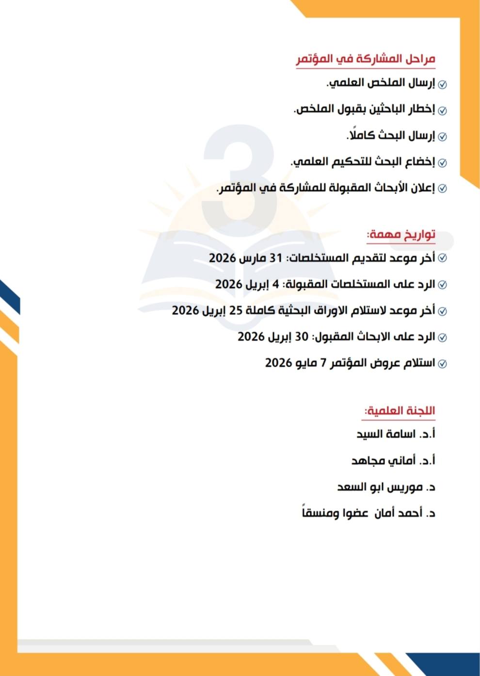 آخر موعد لتقديم المستخلصات: 31 مارس 2026