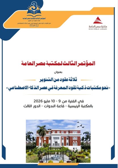 تنظم منظومة مكتبات مصر العامة مؤتمرها الثالث يومي 9 و10 مايو 2026، احتفالًا بمرور أكثر من 30 عامًا على دورها الرائد في نشر الثقافة والمعرفة وتعزيز الوعي المجتمعي.