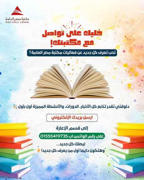 ابعث بريدك الإلكتروني على رقم واتساب قسم الإعارة: 01555419735